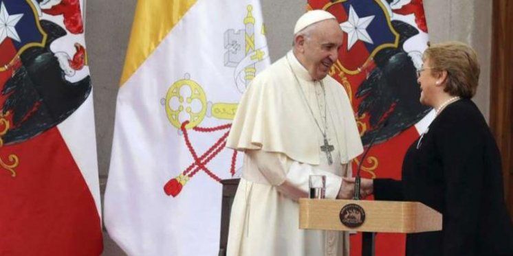 Također u jutarnjim satima 16. siječnja, papa Franjo je započeo svoj posjet ovoj južnoameričkoj državi susretom s predsjednicom Michelle Bachelet, predstavnicima političkog i društvenog života te s diplomatskim zborom. Odmah na početku svog govora progovorio je o skandalu zlostavljanja istaknuvši kako je on ugrozio vjerodostojnost tamošnje Katoličke Crkve te bacio sjenu na njegov dolazak, koji je ujedno prvi u posljednja tri desetljeća.